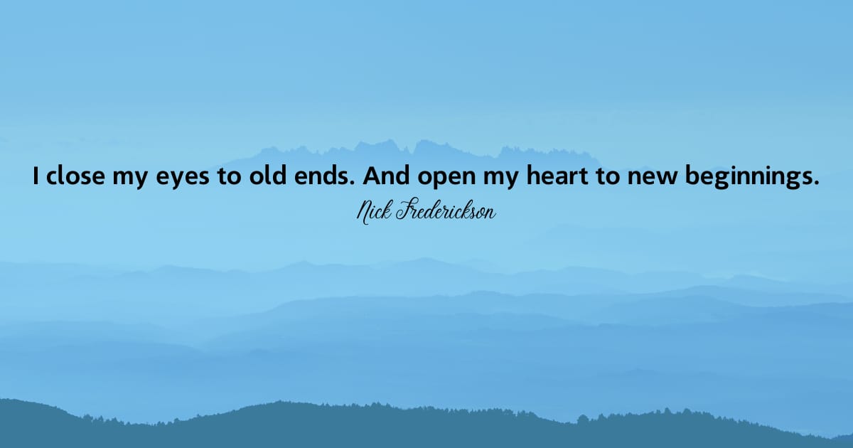 Eu fecho meus olhos para os velhos fins. E abro meu coração para novos começos.