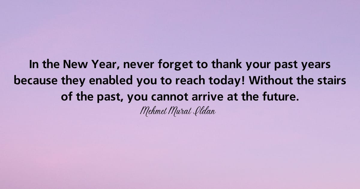 No Ano Novo, nunca se esqueça de agradecer aos seus anos passados, porque eles permitiram que você chegasse hoje! Sem as escadas do passado, você não pode chegar ao futuro.